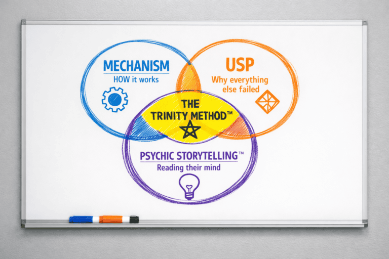 Psychic Storytelling: Mirroring their specific struggles so precisely they feel like you’re reading their mind. Their 2am worries. Their secret fears. The thing they stopped doing that they used to love. When other brands made them feel invisible, yours finally GETS them.